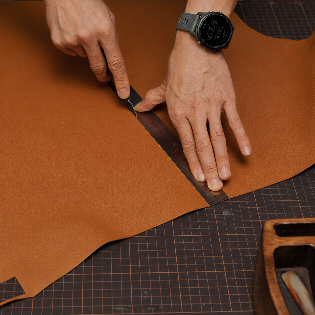 Cut the leather into rough blanks, keeping edges clean and accurate.